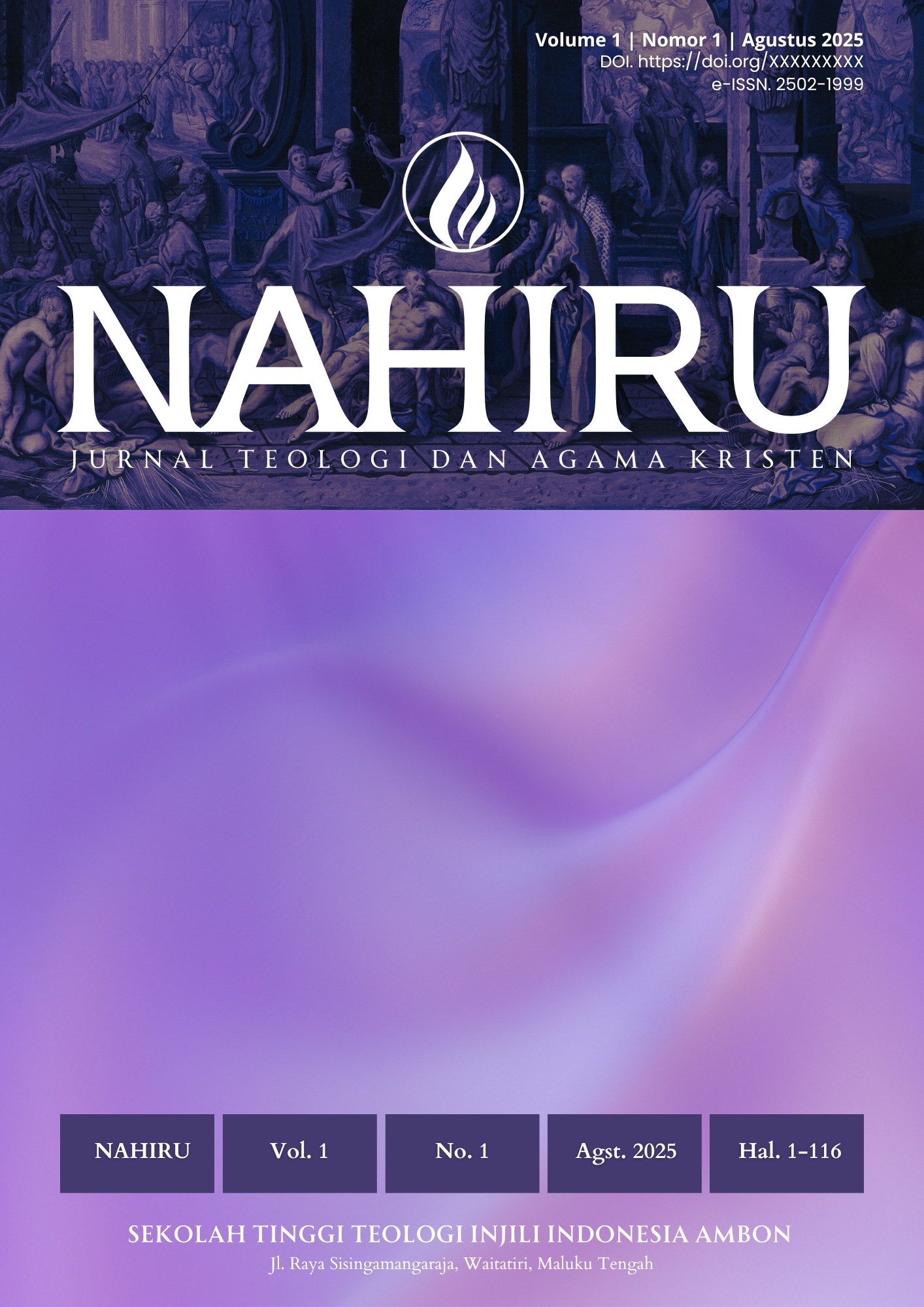 Vol. 1 No. 2 (2026)Kata "Nahiru" (נָהִירוּ) dalam bahasa Aram merupakan bentuk yang berkaitan dengan akar kata נָהַר (nāhar) yang artinya bersinar, bercahaya, memancarkan terang. Kata ini digunakan terutama dalam bahasa Aram, bukan Ibrani klasik, dan muncul di bagian-bagian tertentu dari Perjanjian Lama yang ditulis dalam bahasa Aram, seperti Daniel 5:14: “Aku telah mendengar tentang engkau, bahwa roh para dewa ada padamu, dan bahwa terang (נְהִירוּ), pengertian dan hikmat yang luar biasa terdapat padamu.” Dalam konteks teologis, "nahiru" sering dimaknai sebagai simbol penerangan ilahi atau pencerahan rohani, khususnya dalam literatur Ibrani dan Aram yang berhubungan dengan hikmat dan wahyu dari Allah. Dalam teologi Kristen, kata ini dapat ditafsirkan sebagai simbol dari pewahyuan, kebenaran, atau firman yang menerangi kegelapan, sejalan dengan metafora terang dalam Yohanes 1:5 ("Terang itu bercahaya di dalam kegelapan..."). Jadi, "Nahiru" menggambarkan visi jurnal teologi STTII AMBON sebagai media penerangan intelektual dan spiritual melalui kebenaran firman Tuhan.